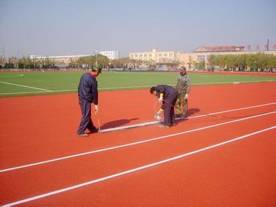 3、第二遍喷涂时,施工方向和第一遍相反,使EPDM的排列方向基本一致,不会使不同方向上的塑胶面层表面摩擦系数不同。要求在喷涂前对第一次喷涂时留下的突出颗粒进行割除,低洼处进行处理,达到均匀、厚实、颗粒堆积成立体效果。