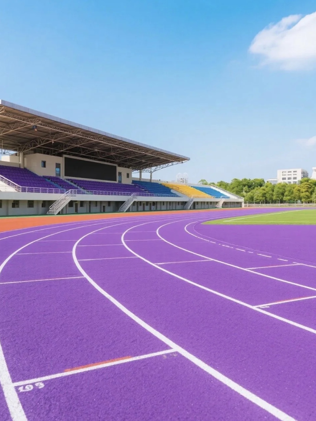 对塑胶跑道的外观进行全面检查,查看表面是否平整、光滑,有无裂缝、气泡、脱粒等缺陷,线条是否清晰、笔直。例如,塑胶表面应无明显的划痕、杂质,线条的颜色应均匀一致。