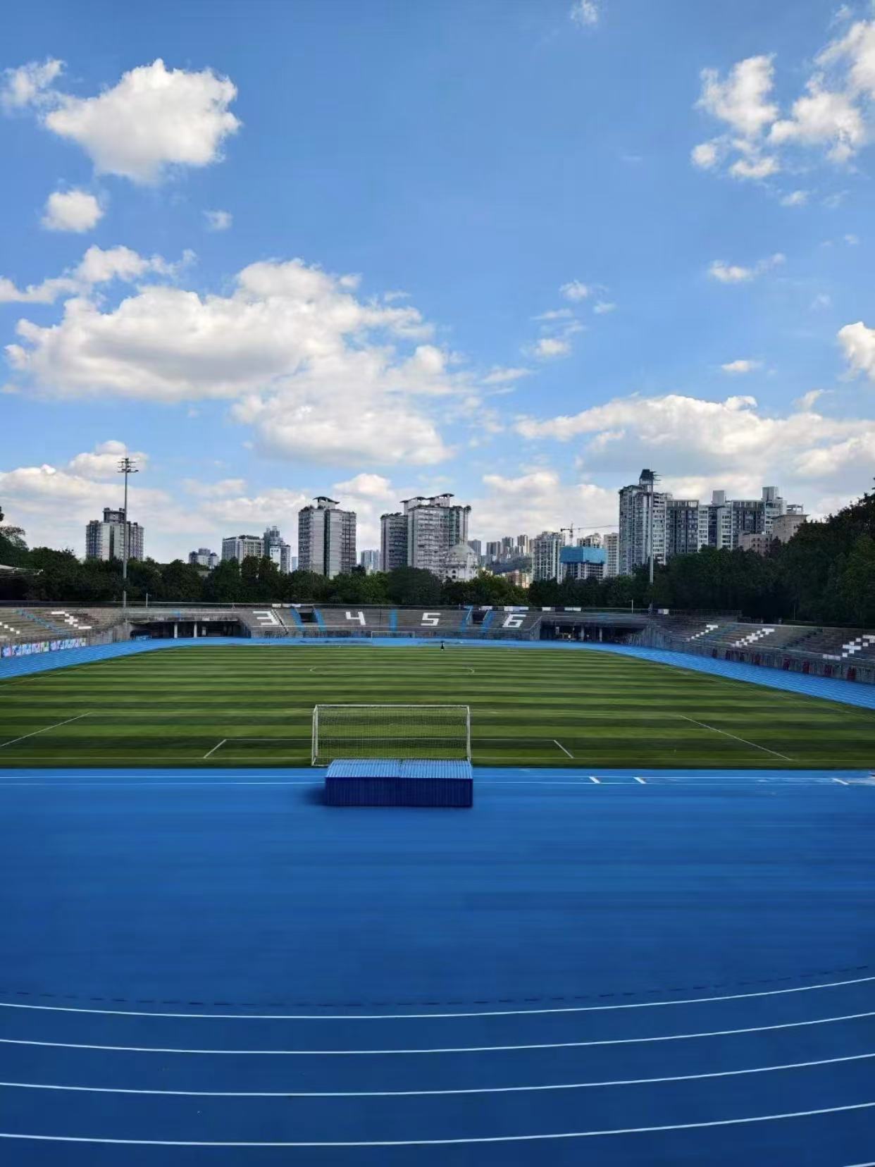 此外,全塑型跑道具有良好的弹性。学生们在跑步、运动的过程中,脚部与跑道接触时会产生冲击力,而这种弹性可以有效地缓冲这种冲击力,减少运动损伤的发生几率。比如,在进行短跑冲刺时,强大的蹬地力量会对膝盖、脚踝等关节造成较大的压力,全塑型跑道的弹性就能够分散和减轻这种压力,降低关节受伤的风险。而且,对于一些不小心摔倒的学生,全塑型跑道也能起到一定的保护作用,减少擦伤、挫伤等情况的发生。