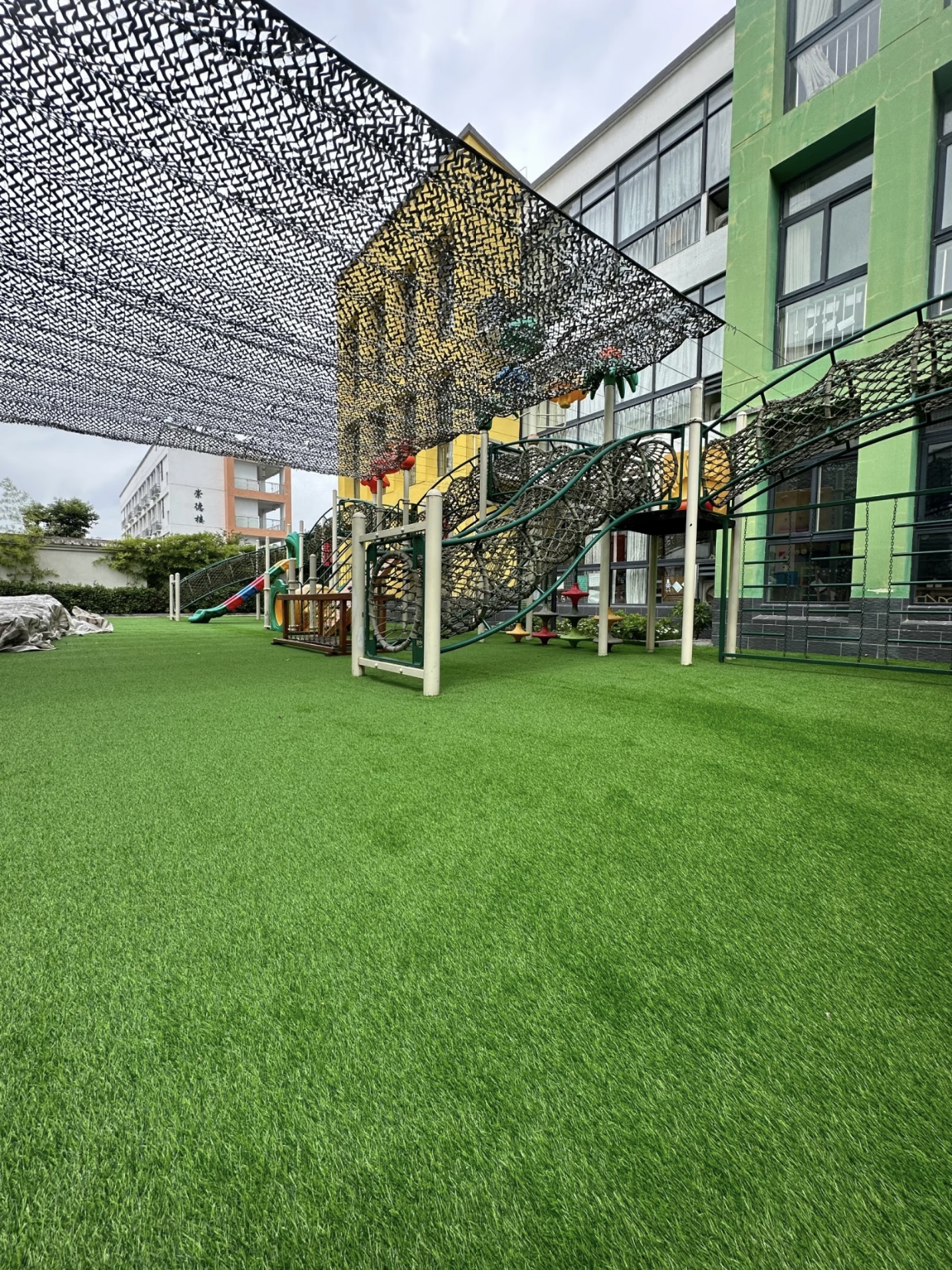 幼儿园是孩子们玩耍和学习的地方,安全是首要考虑的因素。草丝密度应选择在 8800 - 10500 簇/平方米的人造草坪。高密度的草坪可以提供更好的缓冲性能,减少孩子们在摔倒时受伤的可能性。而且,紧密的草丝能够防止杂物和灰尘的进入,保持场地的清洁卫生。此外,色彩鲜艳、柔软舒适的人造草坪还能吸引孩子们的注意力,激发他们的玩耍兴趣。